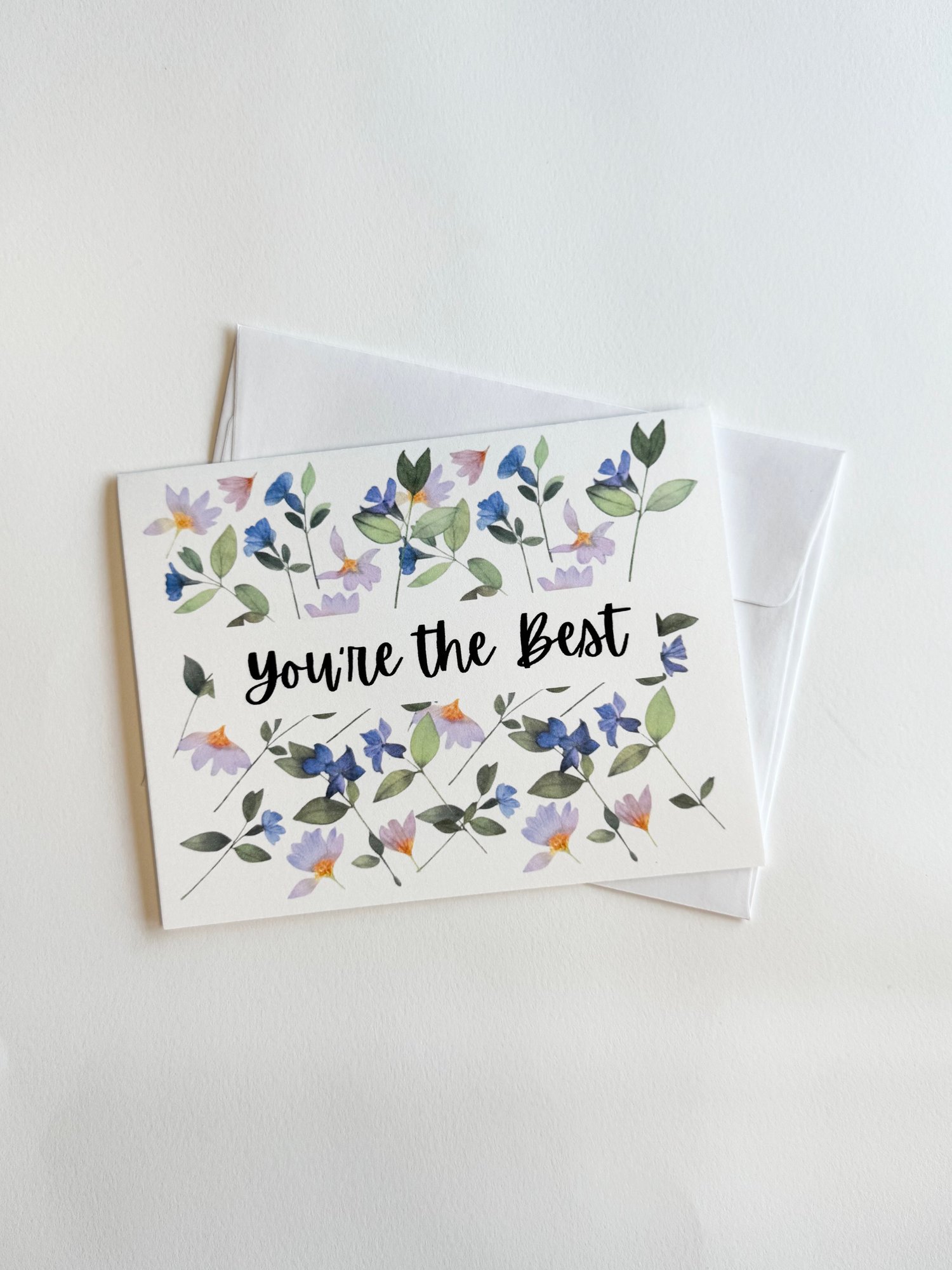 Cards are printed on 80lb smooth white matte card stock, with a white envelope for each card (envelopes are not hand made)