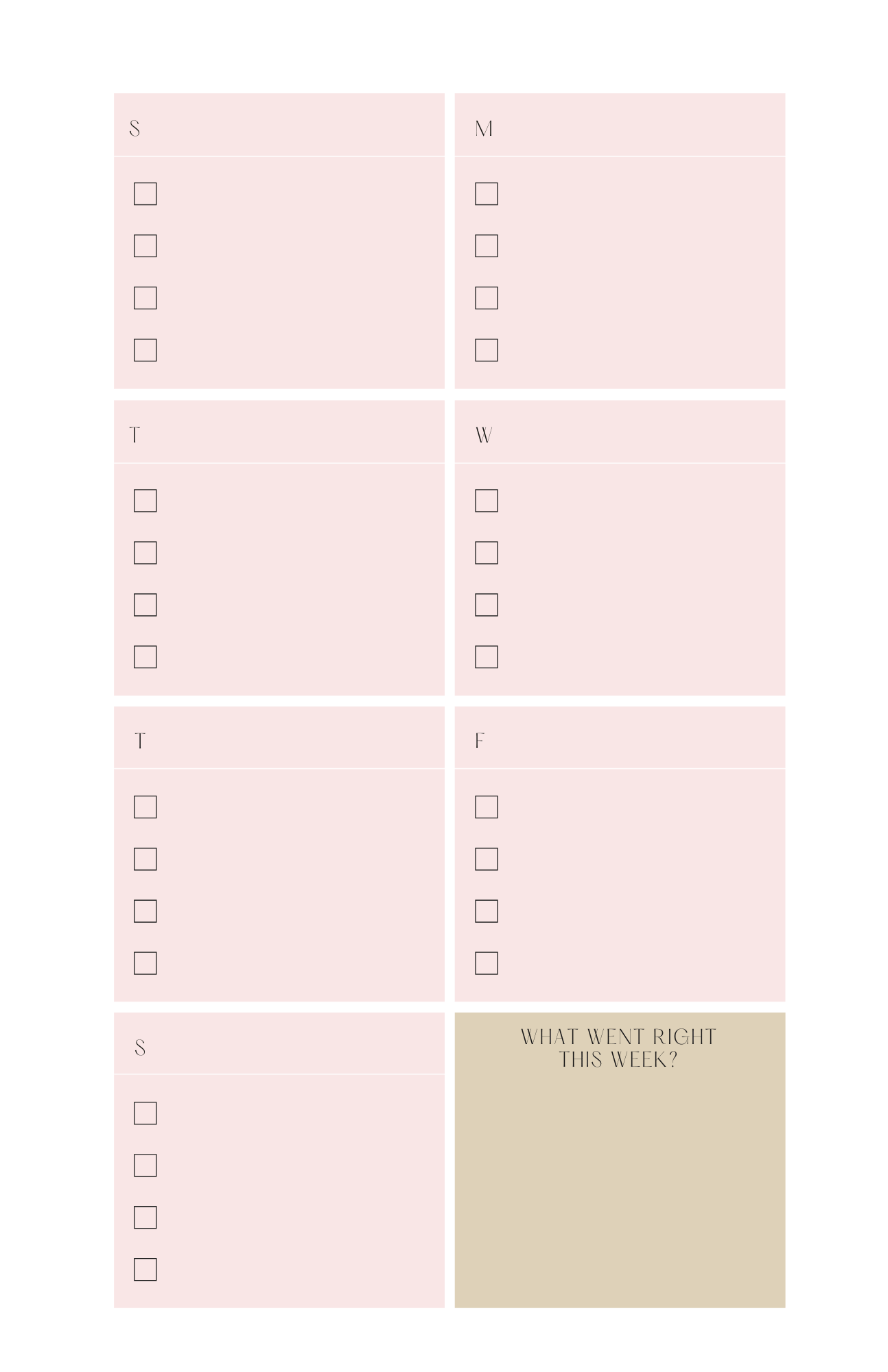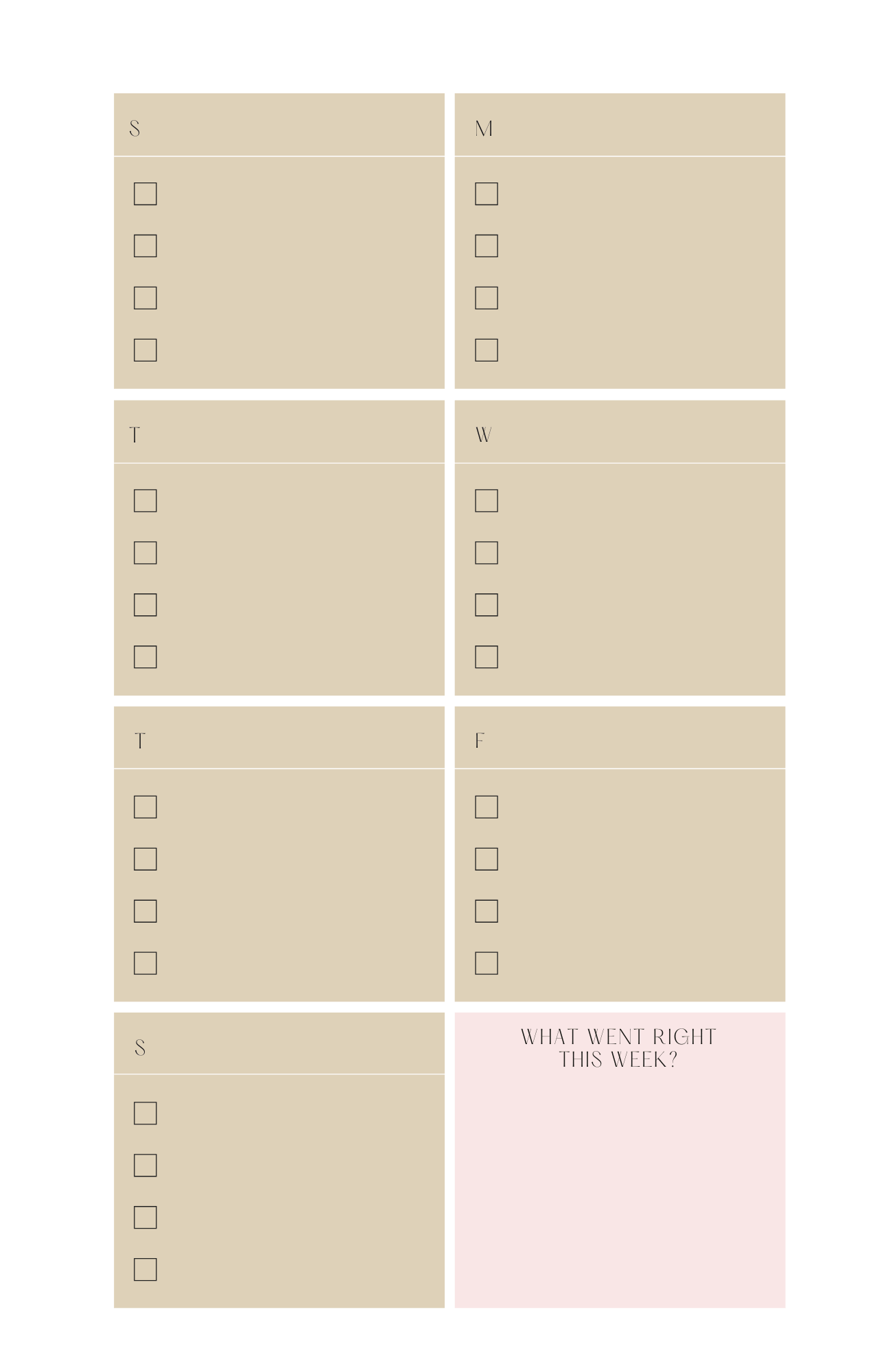 This planner insert comes with a Sunday start date in the monthly and weekly pages.