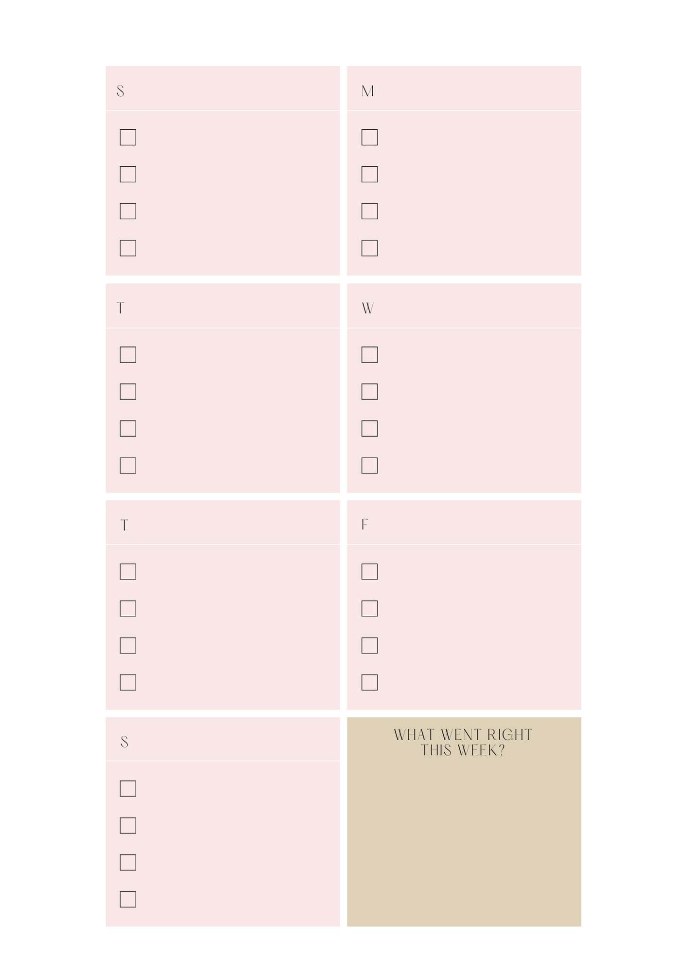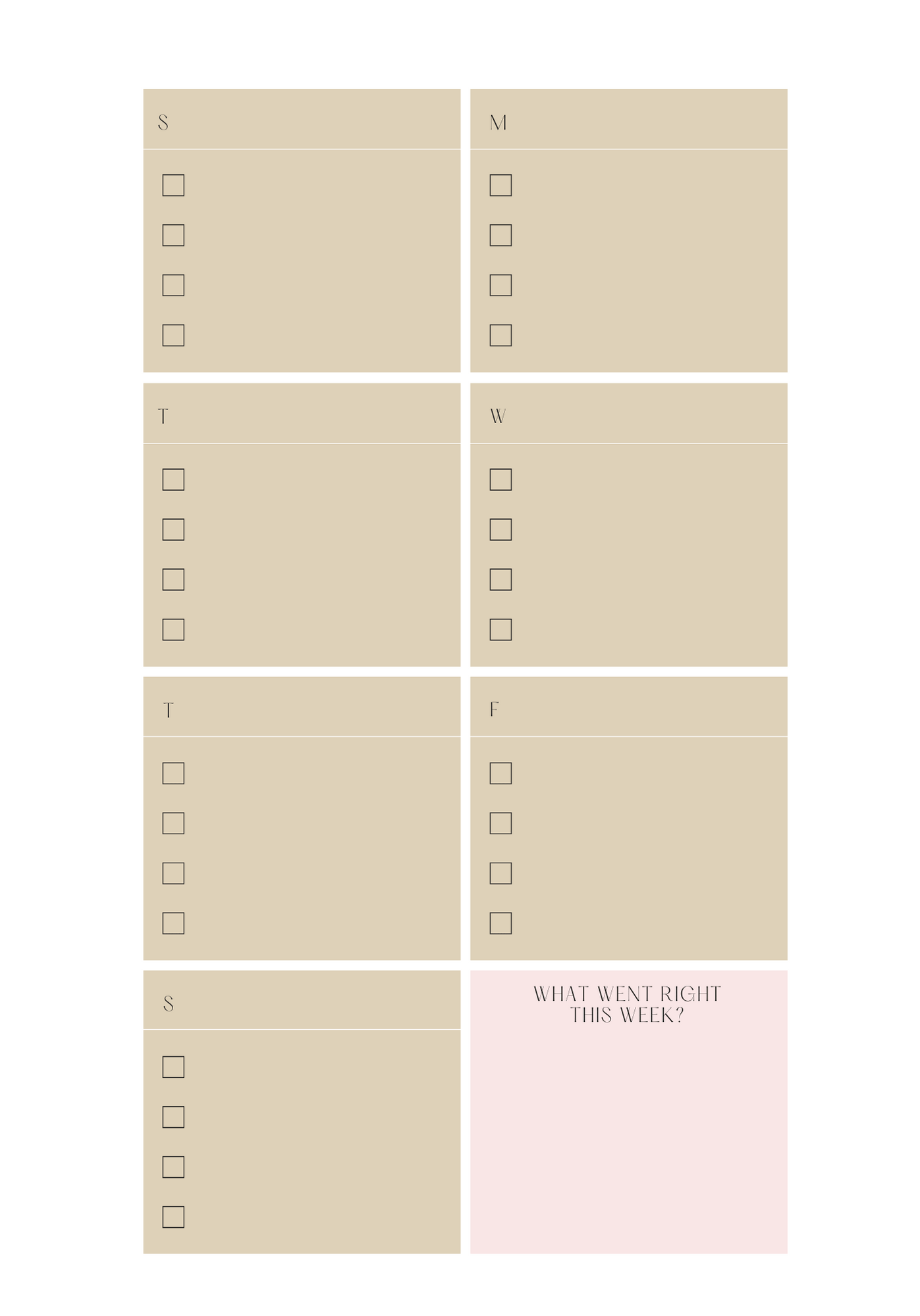This planner insert comes with a Sunday start date in the monthly and weekly pages.