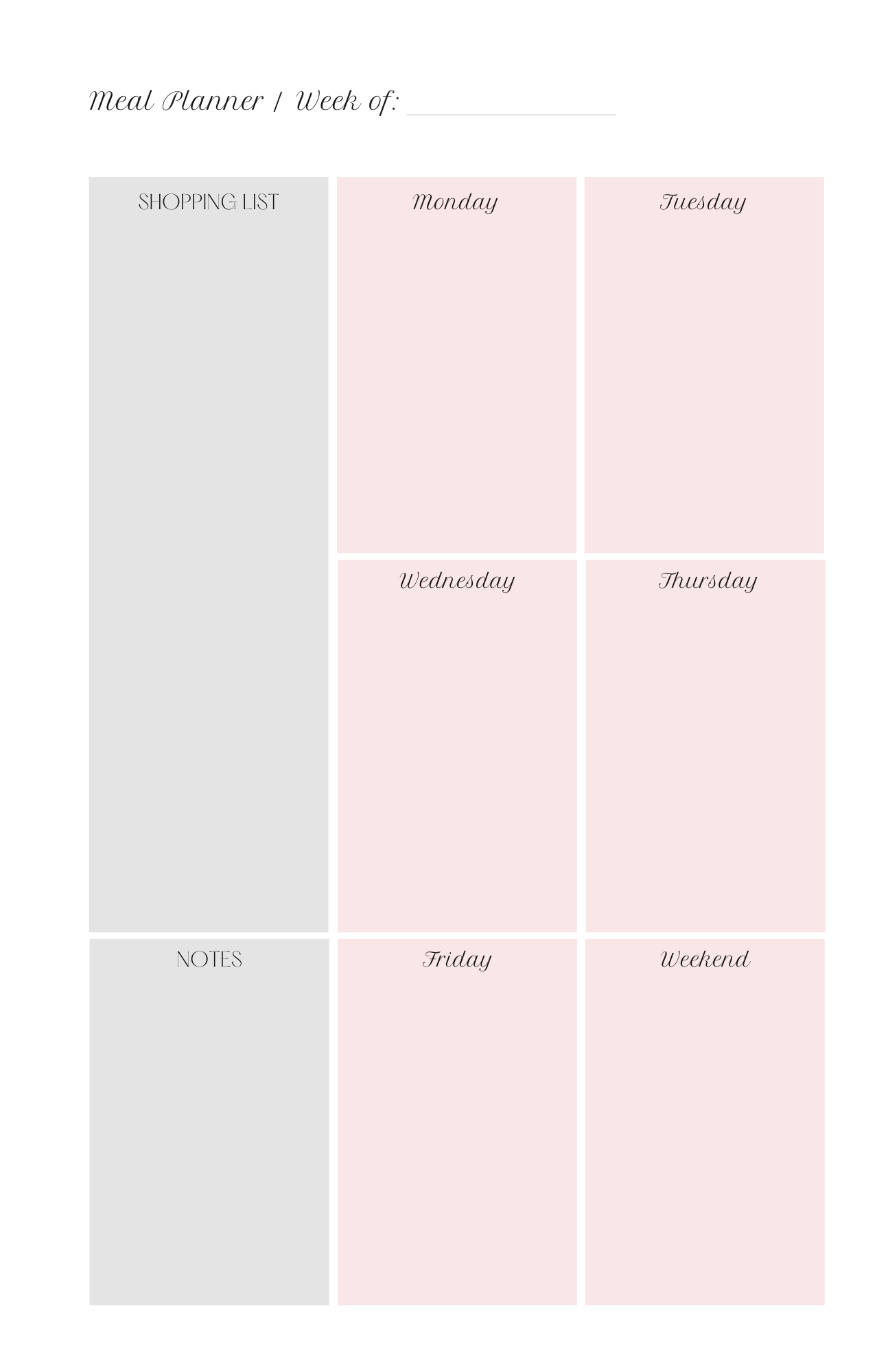 Meal Planer Printable PDF HALF Letter Size 5.5x8.5 inches - for at home printing