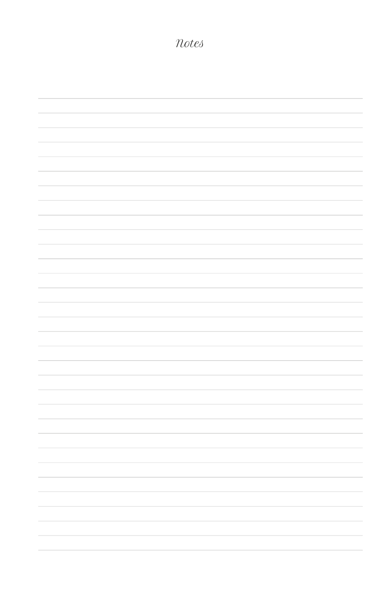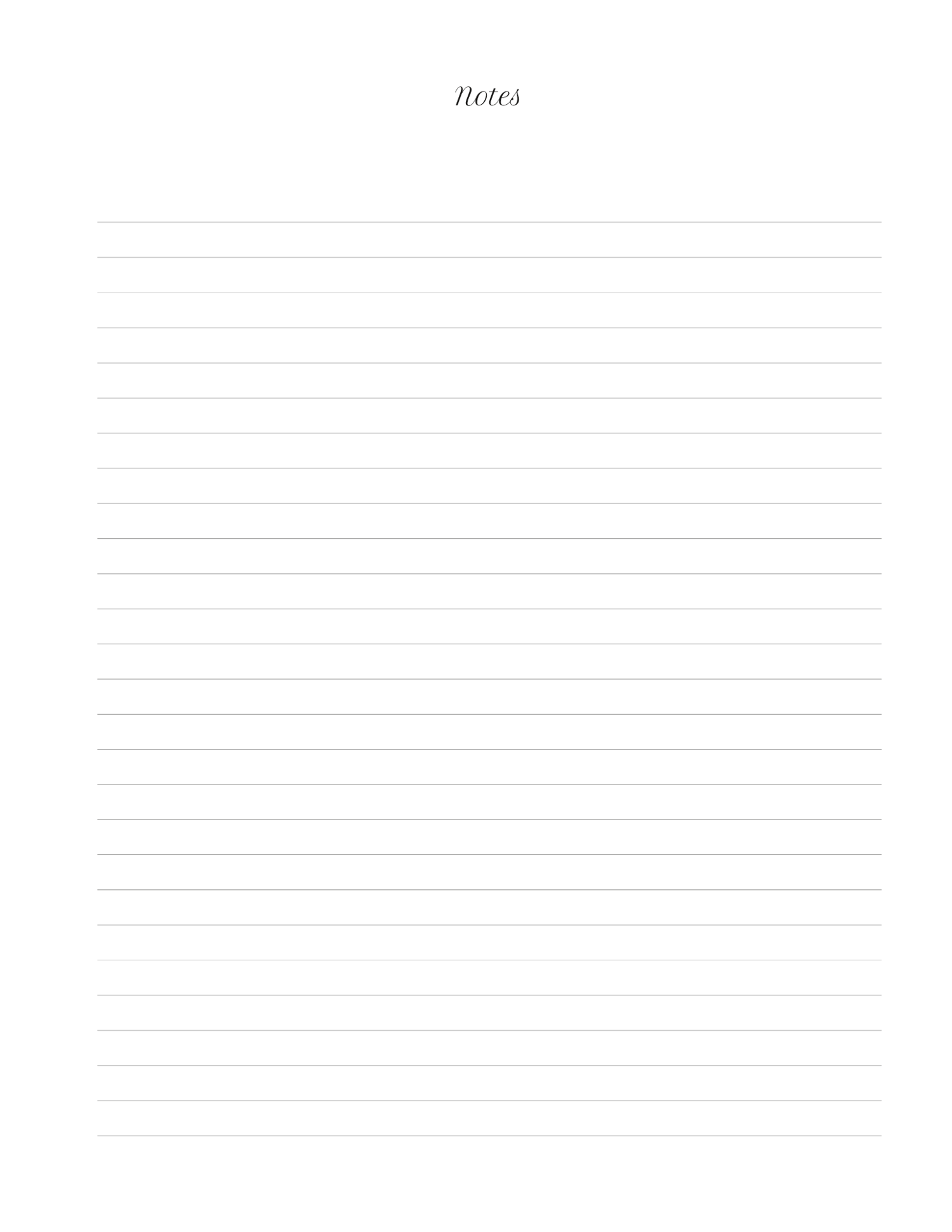 This is a notes insert pdf that you can print at home on letter sized 8.5x11 inch paper. There is a front and a back side giving you a slightly larger margin on the left hand side if you would like to punch that side to put this insert into your planner.